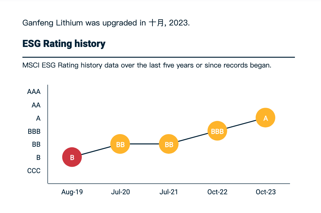 ▲贛鋒鋰業(yè)近五年MSCI ESG評(píng)級(jí)情況